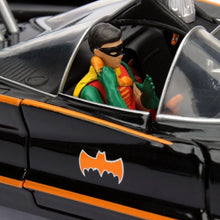 Get your very own 1:24 scale model from the classic 1966 TV programme. The die cast model features Robin sat in the car (not removable) and a 70cm Batman figure, with an accurate interior and rubber wheels. This model arrives in a window box ready to display or play!